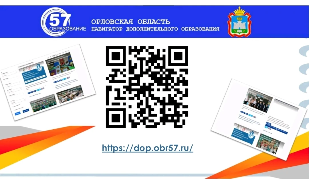 Запись на кружки и мероприятия осуществляется по ссылке https://dop.obr57.ru/