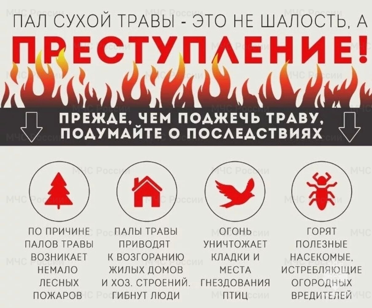 Не поджигайте траву и стерню. Будьте бдительны и строго соблюдайте требования пожарной безопасности.